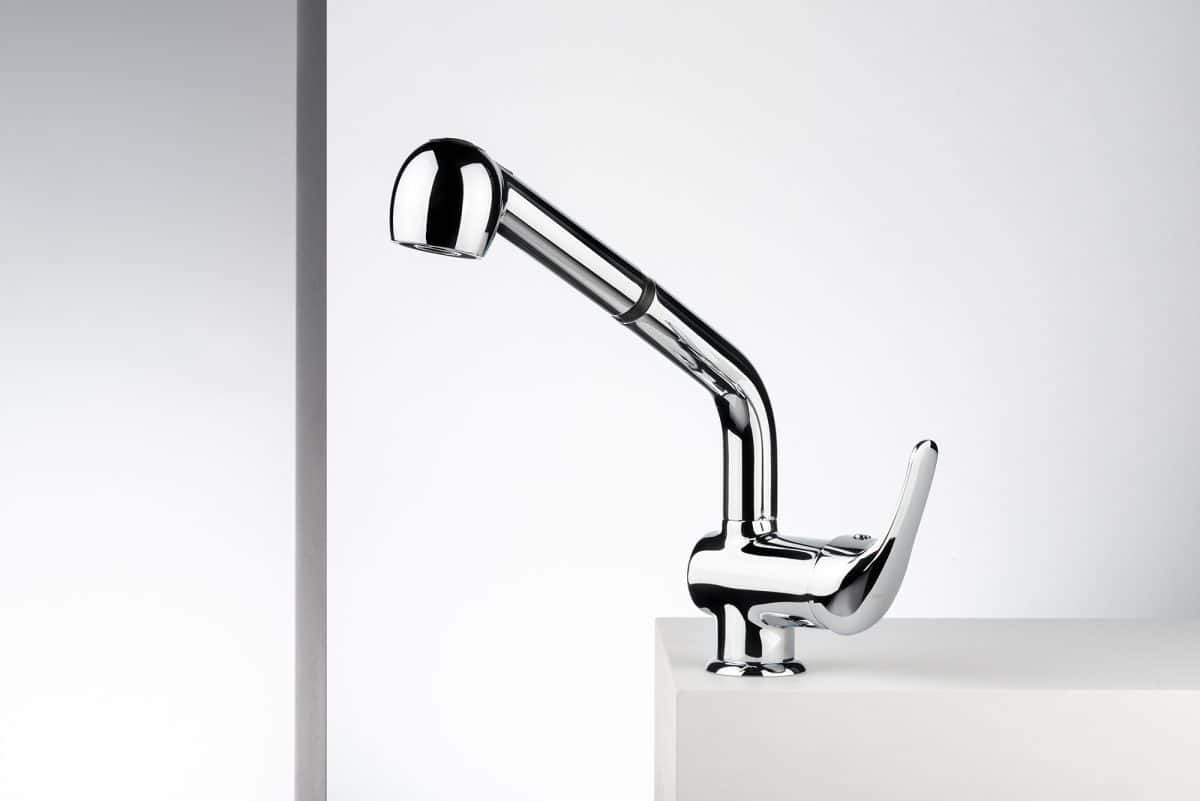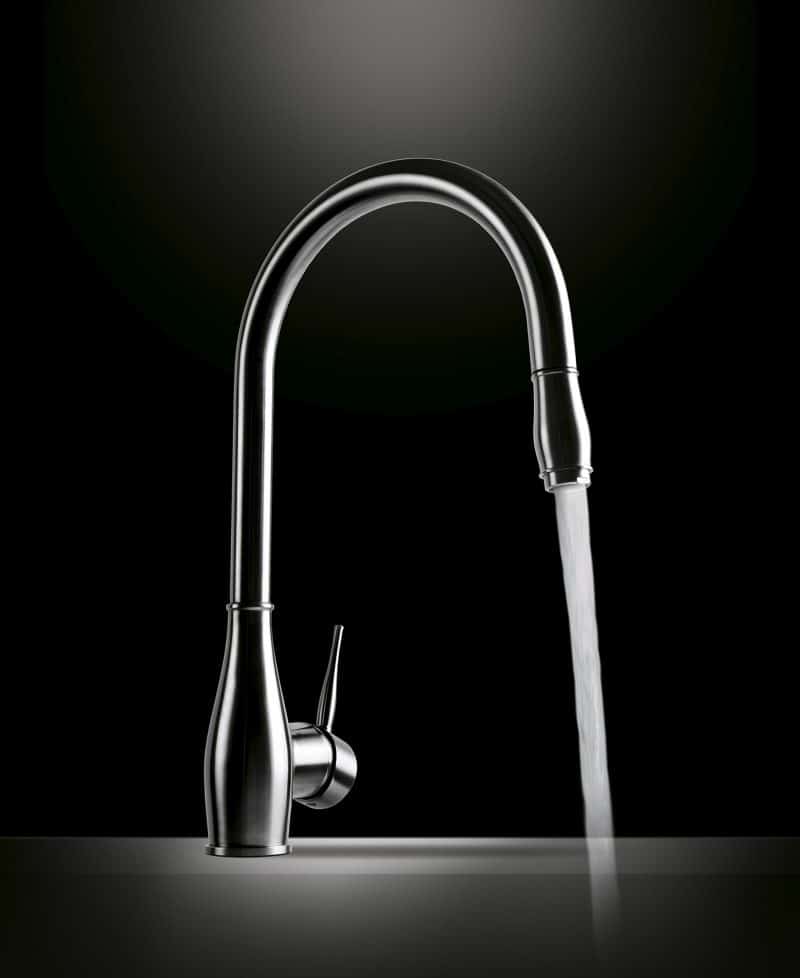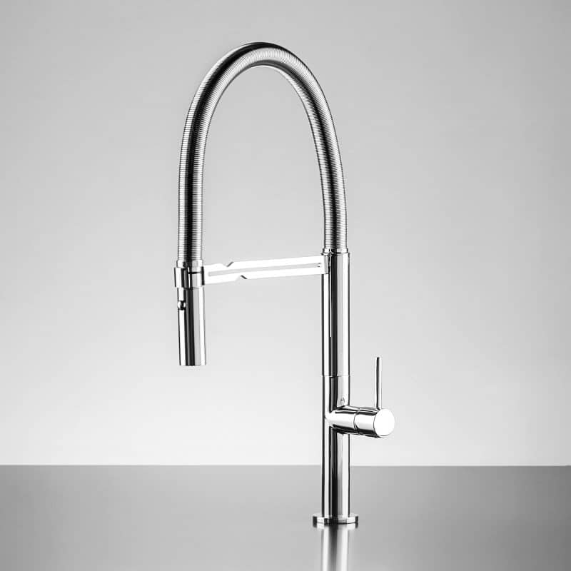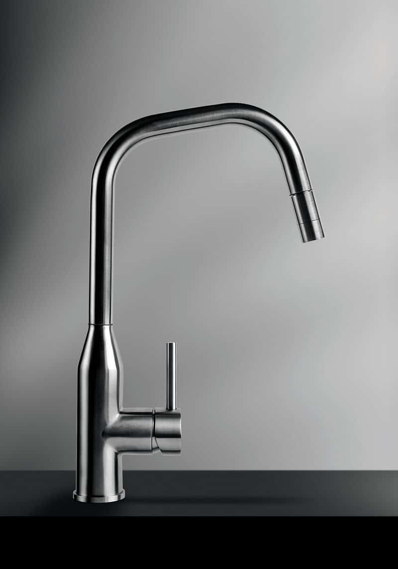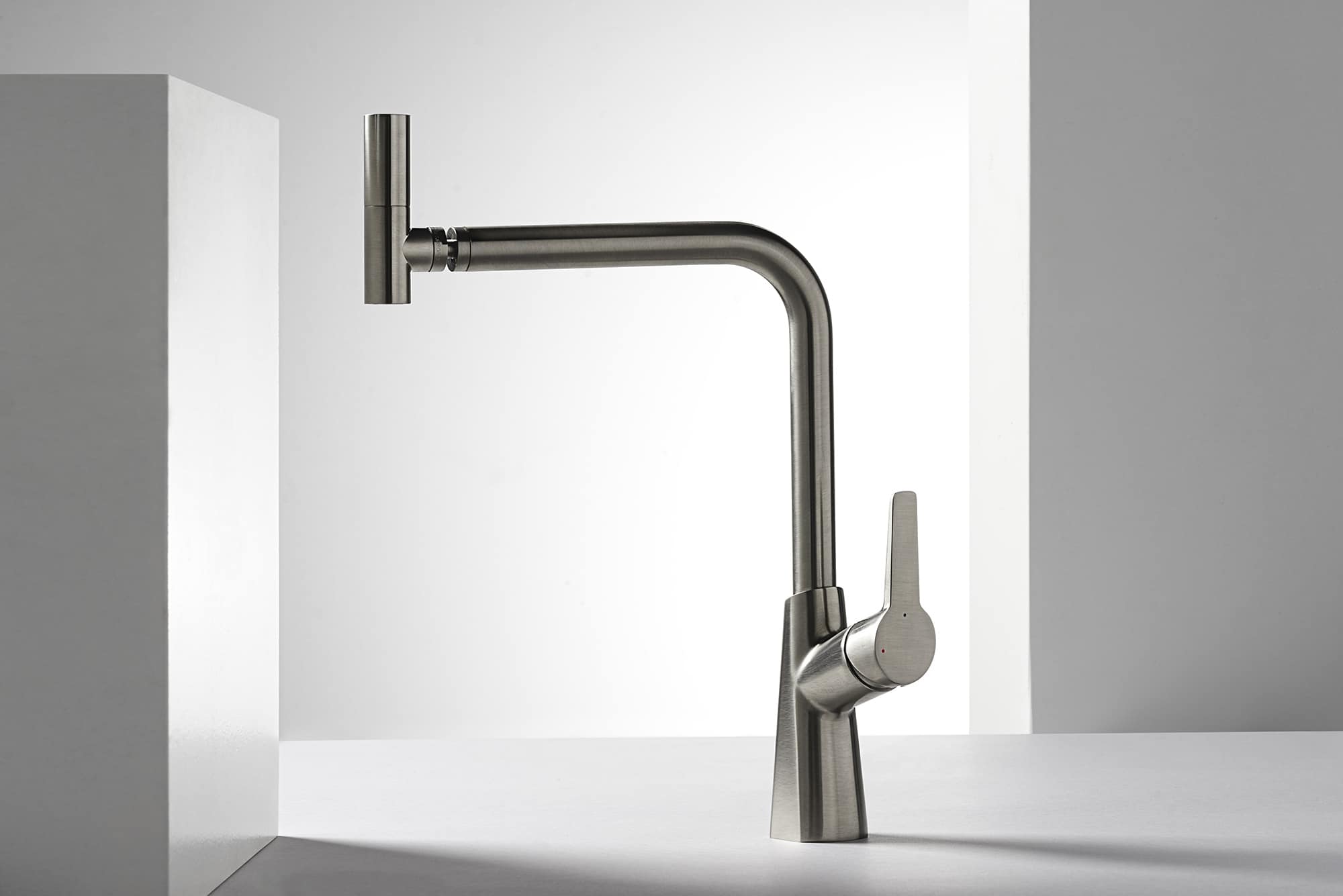 Emmevi offers a collection of kitchen faucets crafted in stainless steel throughout. The collection includes a vast array of sink mixers: with swivel spouts, pull-out sprays, left levers or 3-way diverters. Some of the items in the kitchen collections are also available with an “Energy Saving” cartridge. This collection comes complete with F 3/8” supply hoses.