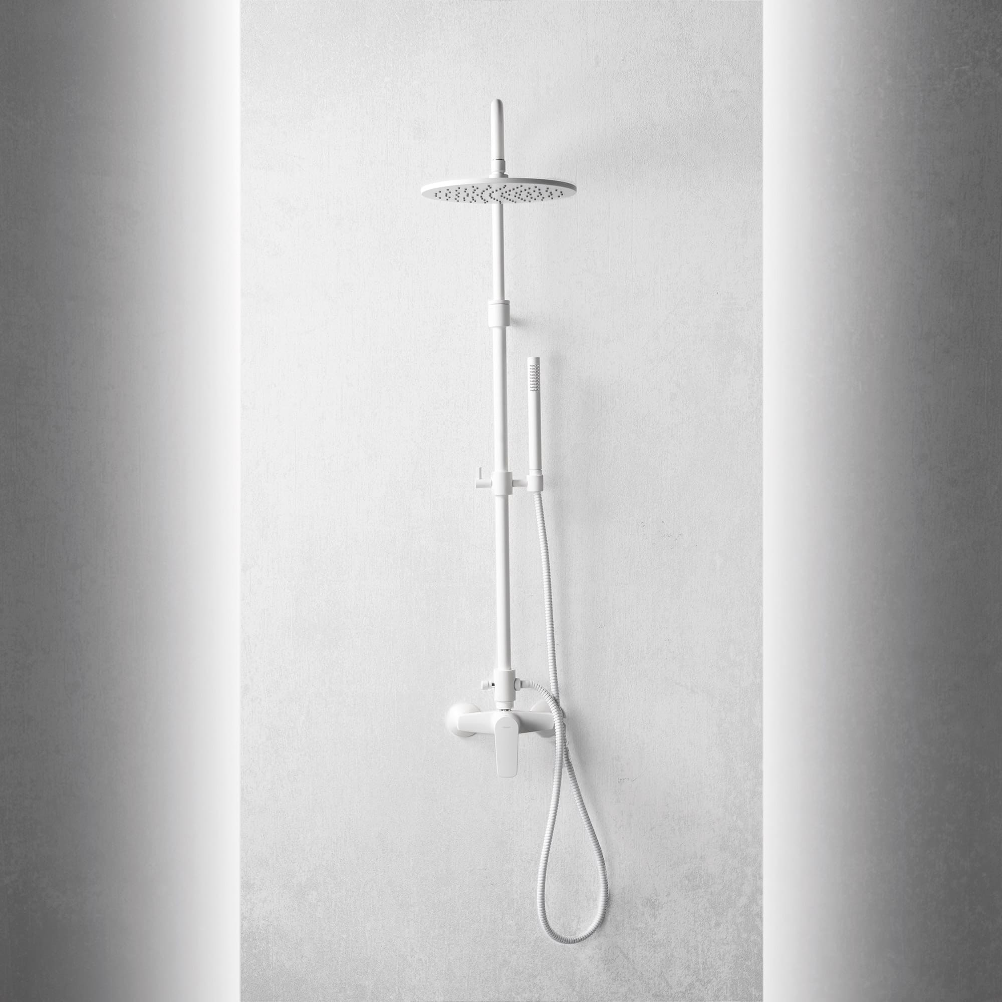 The collection of shower systems boasts a wide variety of models, available in brass or stainless steel. The large selection of shapes (squared or rounded, classic or modern) makes it easy to find the model that’s the best fit for the design of your bathroom. The shower systems are available with regular or thermostatic mixers (able to maintain a constant temperature and avoid undesired shifts between hot and cold).