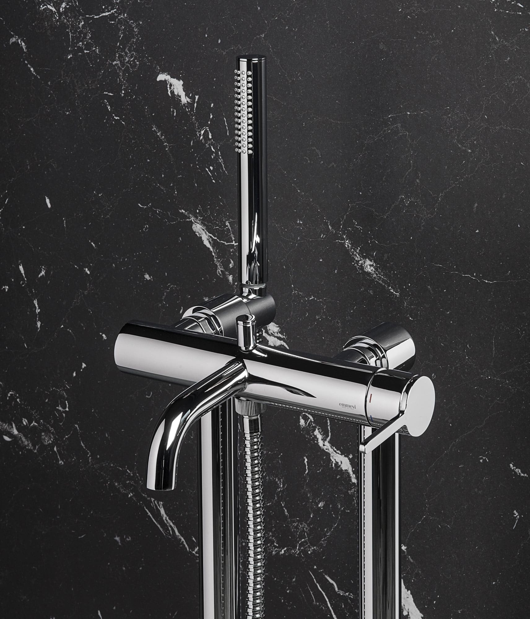 Thermostatic mixers allow you to adjust the temperature of the water delivery. Once you’ve set your chosen value, the faucet delivers the water at the requested temperature, avoiding abrupt shifts between hot and cold (even if you’re in the shower and someone turns on the water in another room!). The faucets are available for both bathtubs and showers.