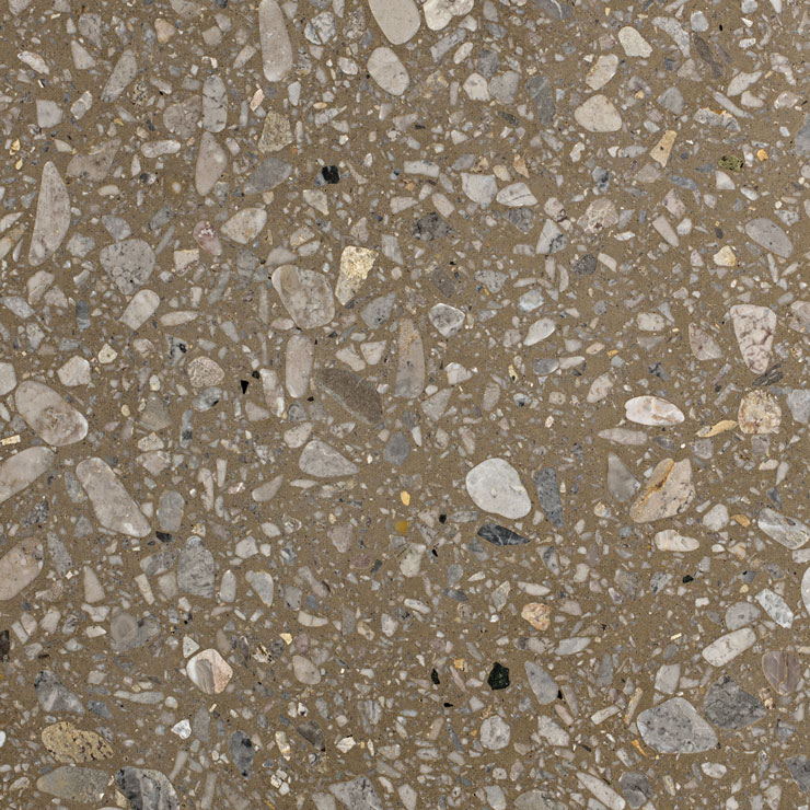 Our terrazzo slabs may be provided with four types of finish: honed, polished, brushed, or bush-hammered.